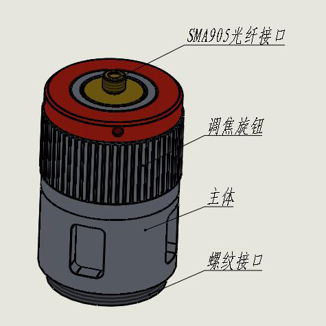 準(zhǔn)直鏡與外部的固定是通過螺紋實現(xiàn)的。