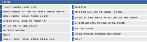 軟件中的工具部件都與設(shè)計過程中的重要步驟相符合,從而構(gòu)成了軟件中的基礎(chǔ)功能。其中分析、優(yōu)化和公差工具包含了一系列特定公差內(nèi)基于物理算法的分析、仿真、以及優(yōu)化光學(xué)系統(tǒng)。