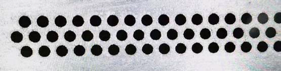 在1mm以下薄鈦板,鋁板,銅板,不銹鋼板上可以打微小孔,孔徑Φ0.1-0.5mm,配合同軸吹氣,切割圓度好,邊緣光滑。