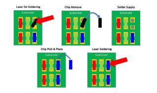 Mini LED返修焊接用激光返修焊接設(shè)備實(shí)現(xiàn),返修焊接中對單顆芯片的重新焊接過程。
