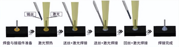 激光錫焊是一種利用高能量密度激光束作為熱源,對(duì)錫料(如錫絲、錫膏)進(jìn)行局部加熱,使其快速熔化并潤(rùn)濕待焊接金屬表面,冷卻后形成可靠焊點(diǎn)的精密焊接技術(shù)。